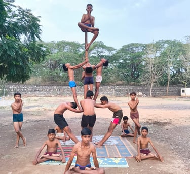 🔹 Physical training: Mallakhamb, stick fighting (Lathikathi), and karate